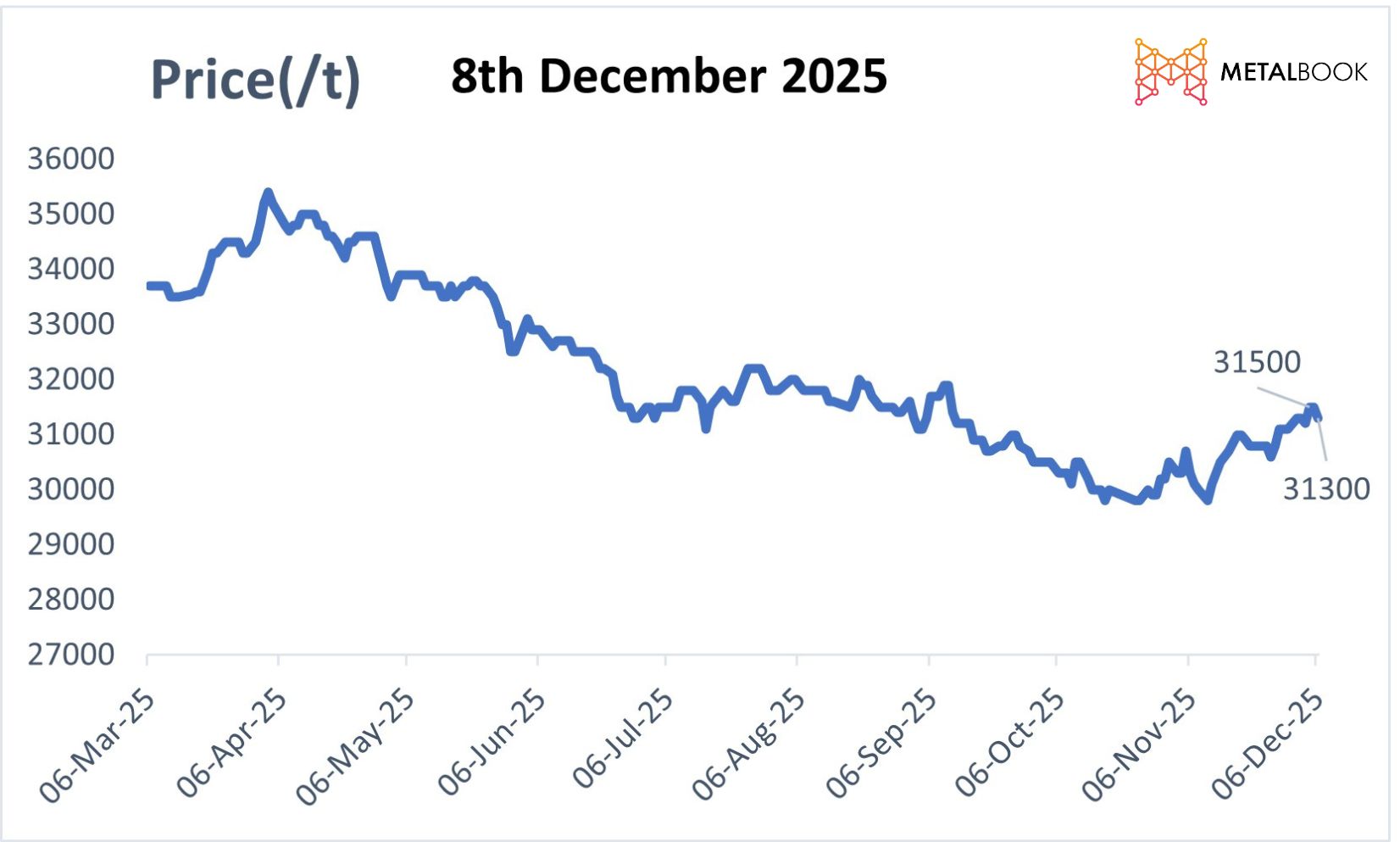 Alang's melting scrap price has dropped slightly to ₹31,300/ton, down ₹200/ton. The decrease can be attributed primarily to low activity from Bhavnagar-based IF steel mills and decreased sales of semi-finished steel. The mills are operating cautiously and avoiding excess inventory; the suppliers are also compelled to trim offers so that the materials are kept moving instead of stockpiling.