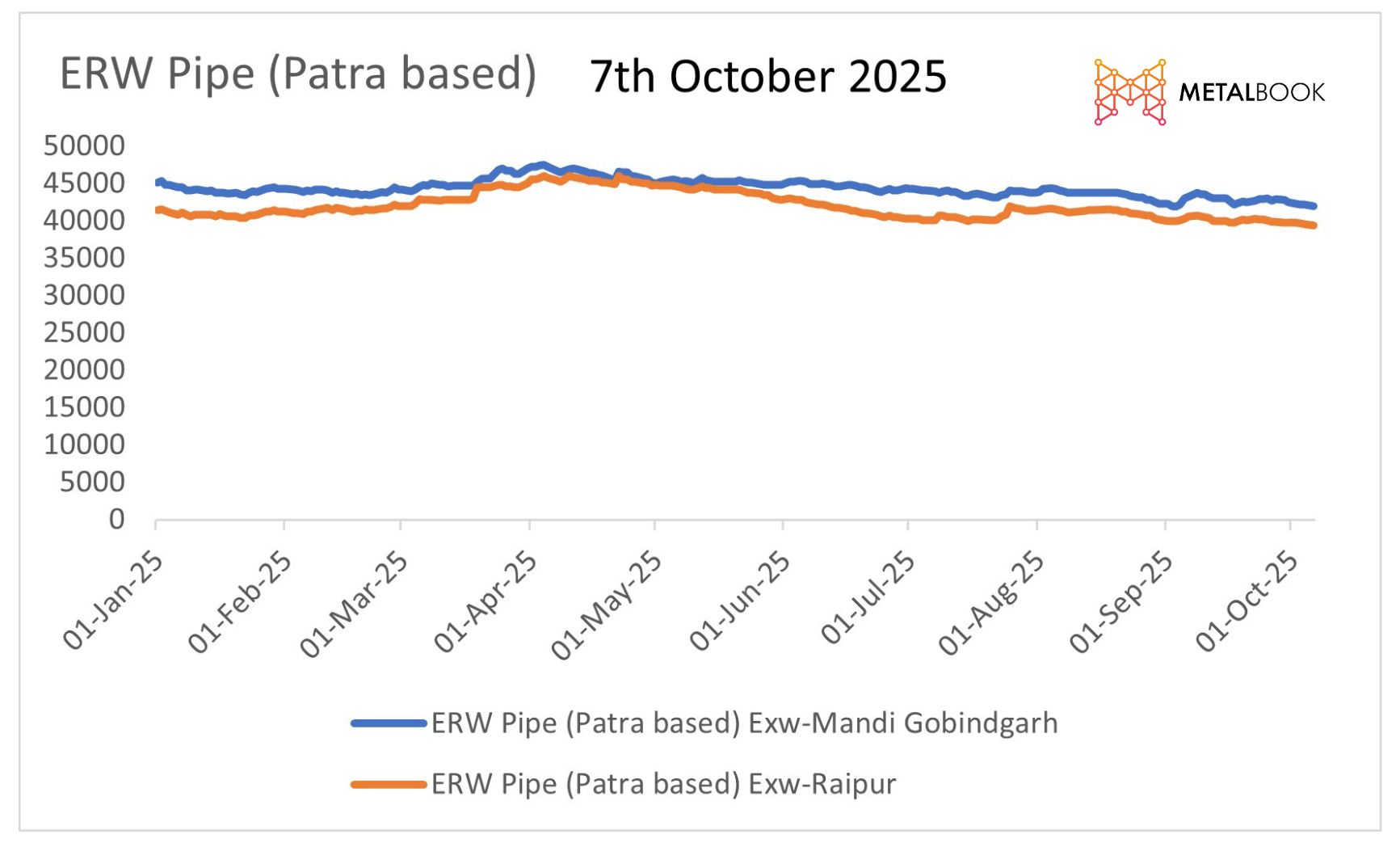 In the near term, ERW Patra pipe demand is expected to be soft due to buyer sentiment/trade volumes continuing to be dampened by the festive season caution and monsoonal disruptions. The sentiment currently reflects a wait-and-see strategy, as stockists sit back and wait for more clarity on policy matters. However, once the festive month is over and there is stabilization from the flood regionally, demand is anticipated to gather pace again. Clarity over iron ore duties and a better weather forecast should support a gradual recovery in market activity after the festivities.