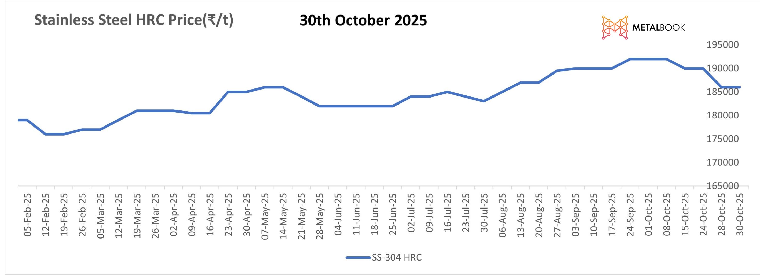On the raw material aspect, declines in ferro molybdenum, ferro chrome, and ferro silicon indicate weak stainless-steel consumption and cautious mill restocking. The ferrous scrap market was also lacklustre due to both a low DRI price and limited bookings. Despite a modest increase in LME nickel prices, its support to domestic stainless steel is marginal at best as downstream demand recovery remains tepid.