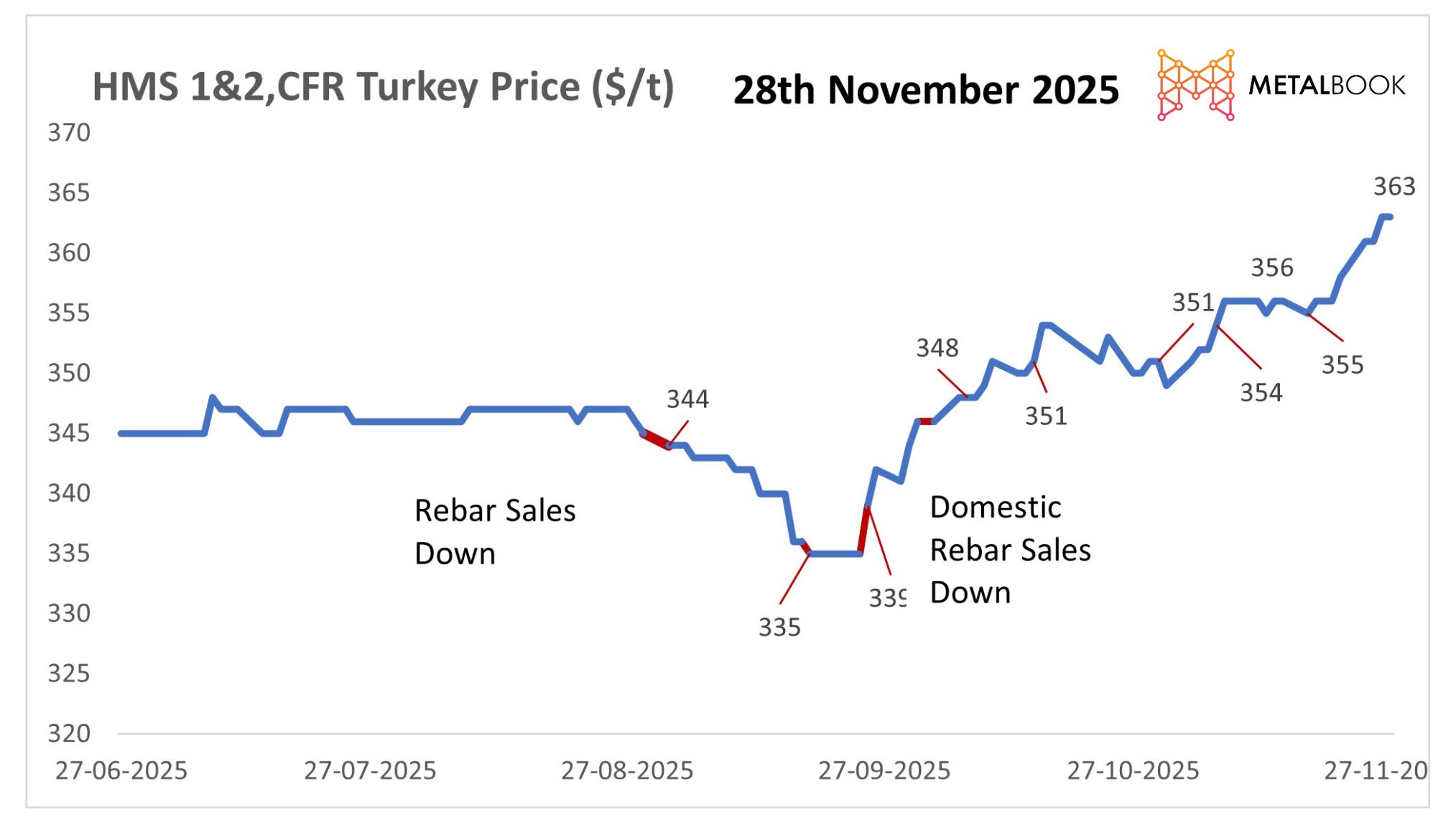 With strong finished steel sales within the Turkish domestic market and all Turkish mills having a backlog of orders until at least January, there appears to be continued price support. Winter restocking will continue to drive demand. Additionally, tight shortsea supply and rising domestic rebar prices will continue to exert upward pressure on prices.